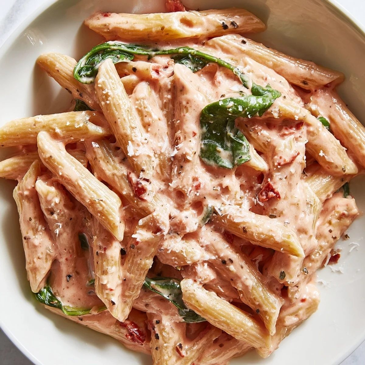 This one-pan pasta brings together sun-dried tomatoes, fresh spinach, and a luscious cream sauce that coats every bite perfectly. The pasta cooks directly in the broth, absorbing all those savory flavors while creating a naturally thickened sauce. Ready in just 30 minutes, this Italian-inspired dish comes together with minimal cleanup and delivers restaurant-quality results with simple pantry ingredients.